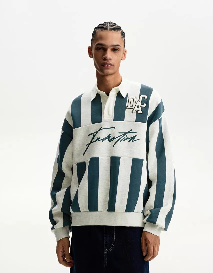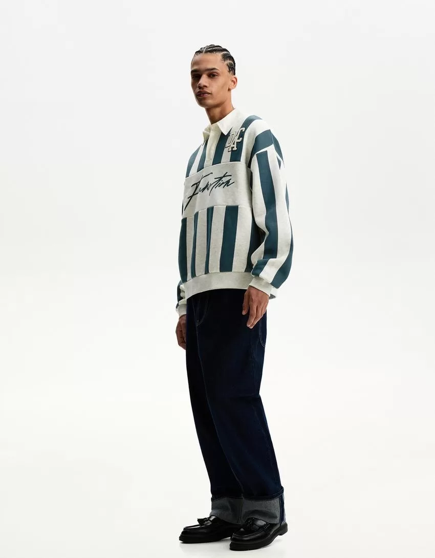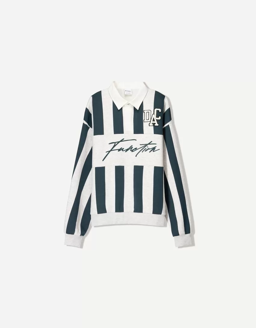 Printed sweatshirt with polo collar