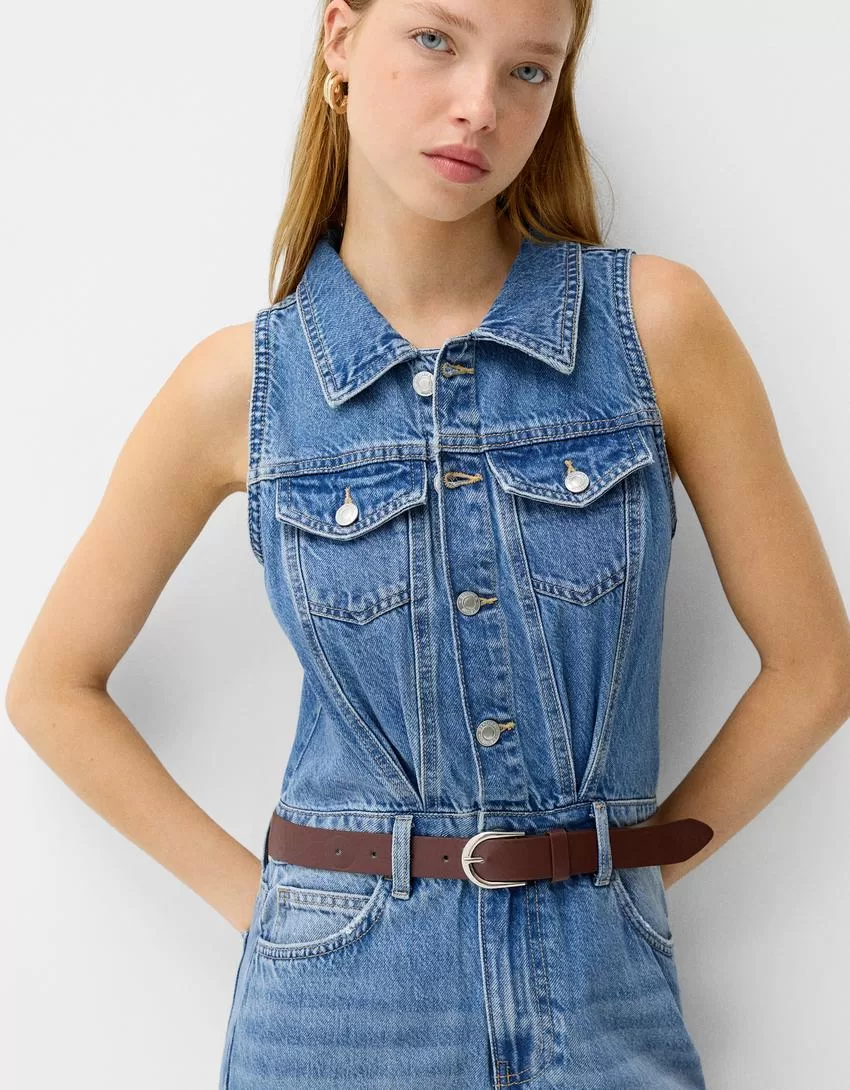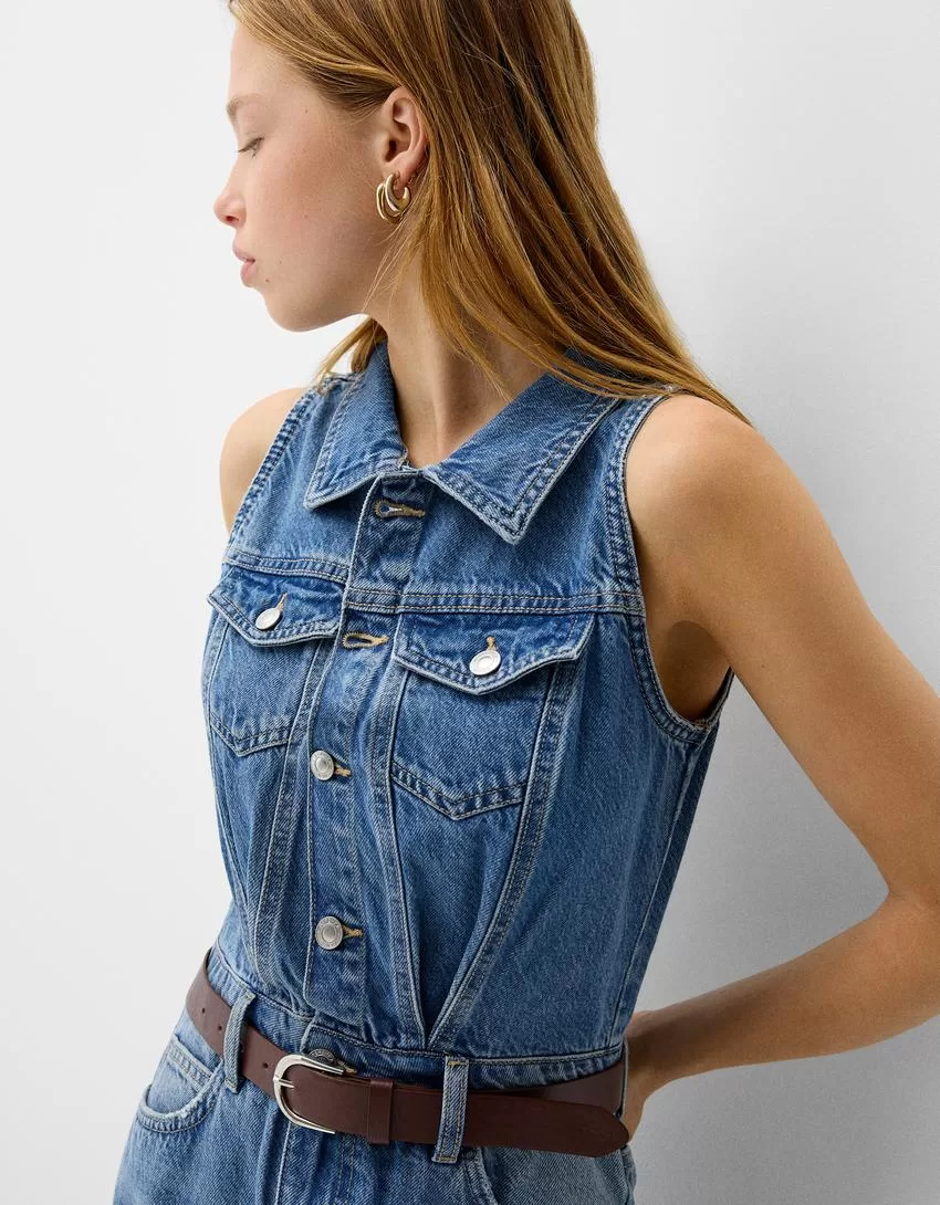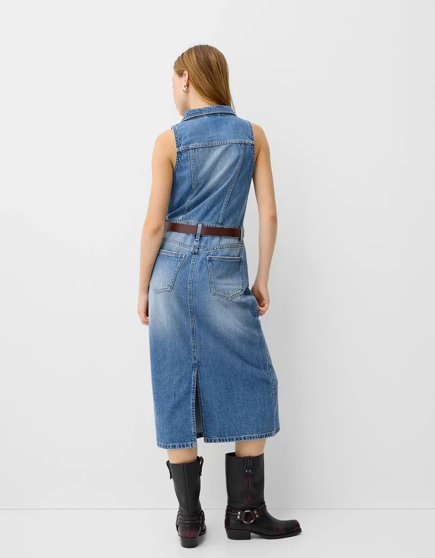 Denim midi dress with belt