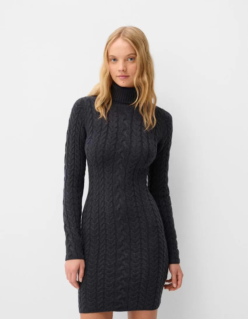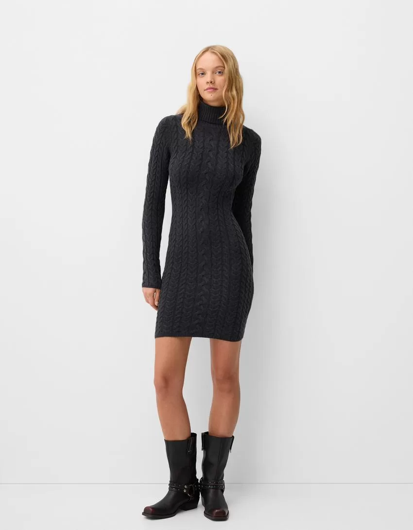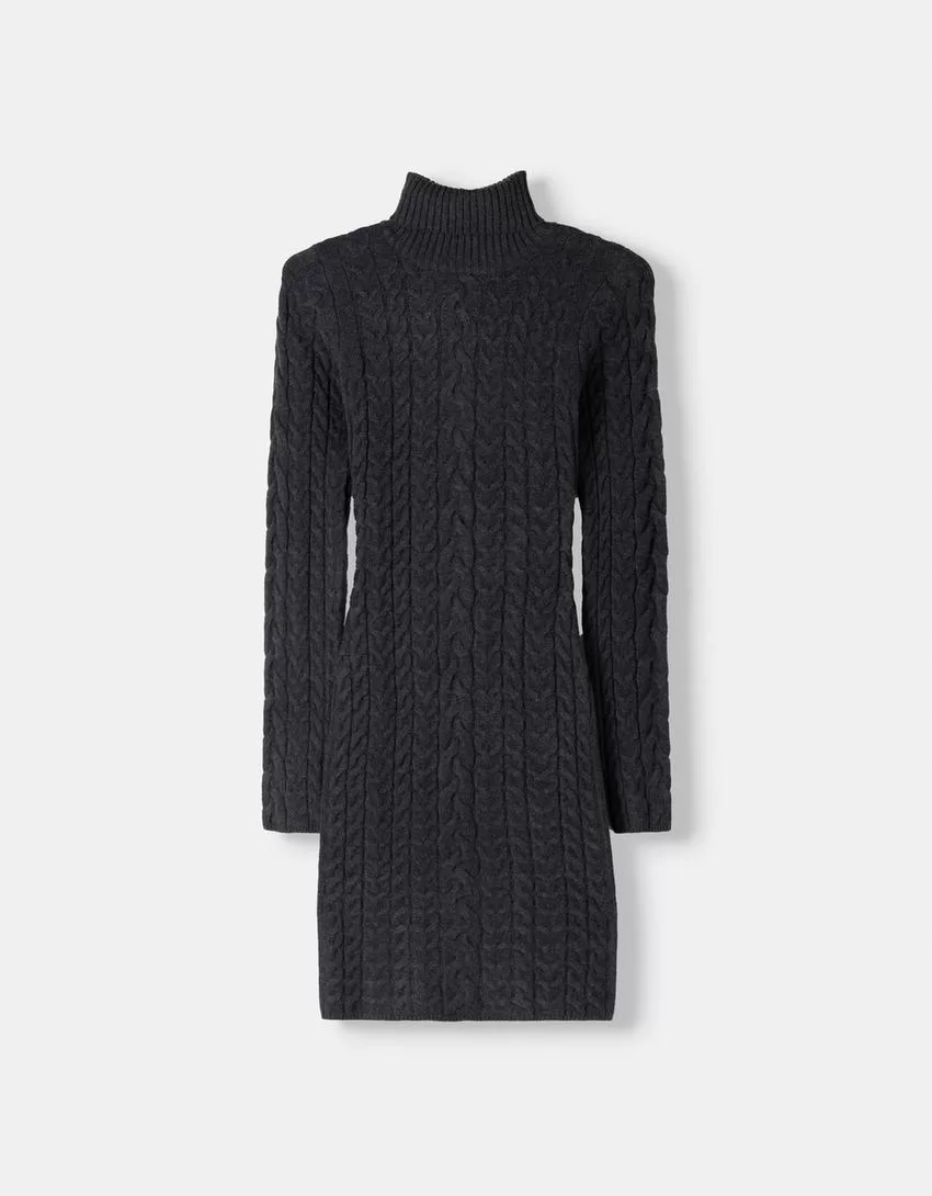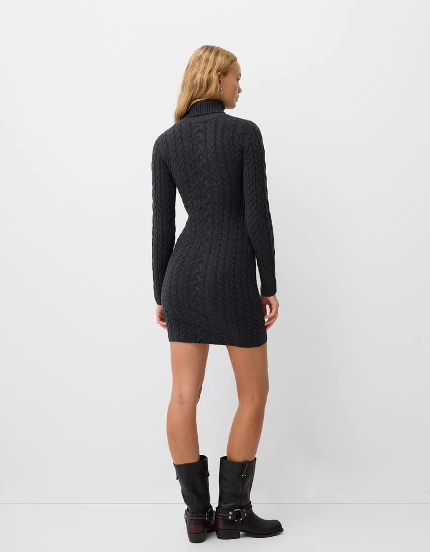 High neck cable-knit mini dress