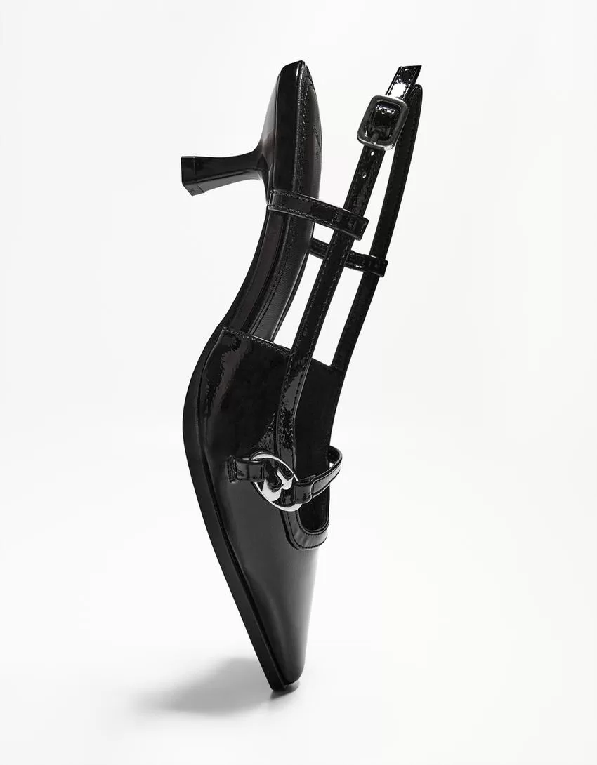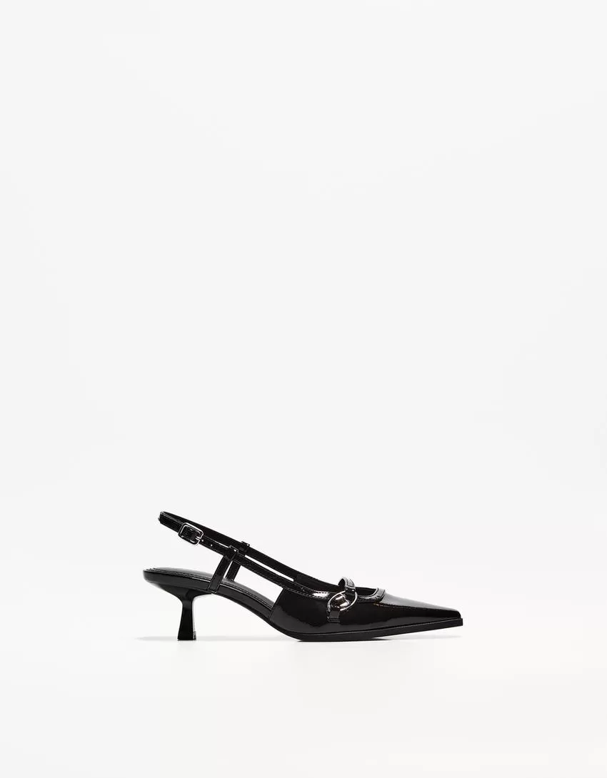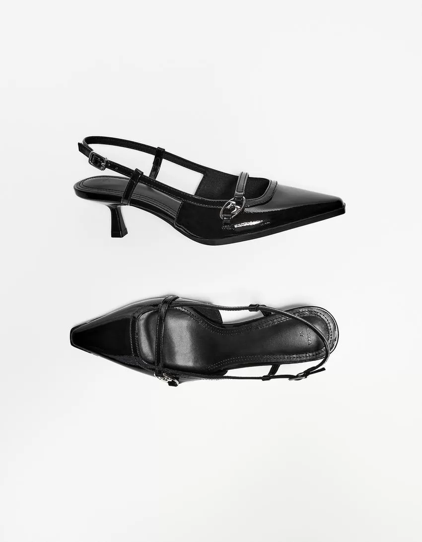 Kitten-heel shoes with buckle