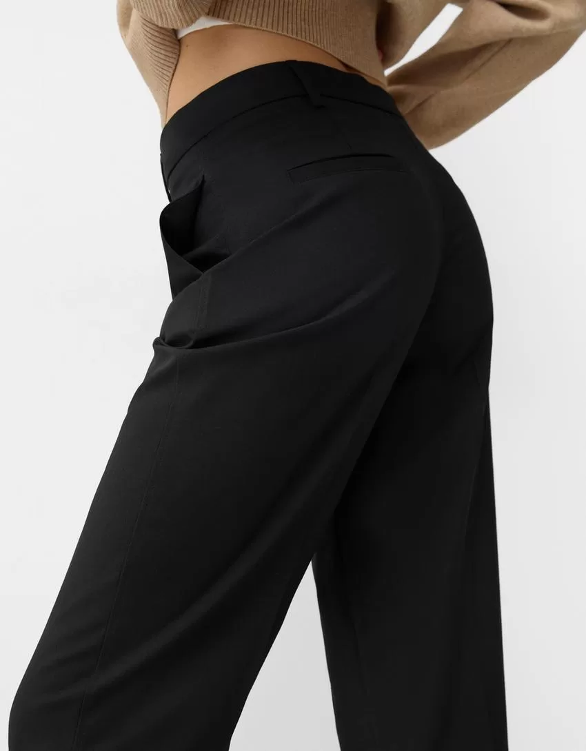 Low-rise straight-fit tailored pants
