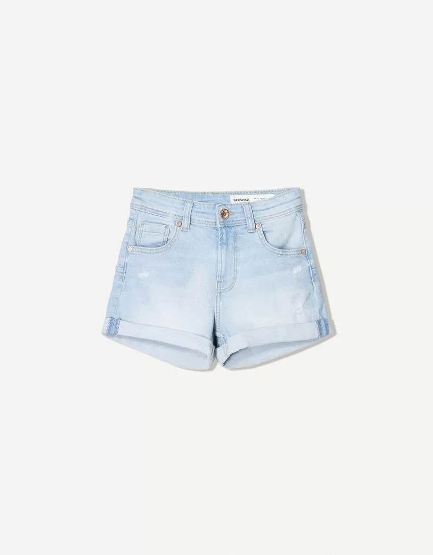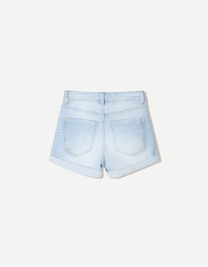 Roll-up denim shorts
