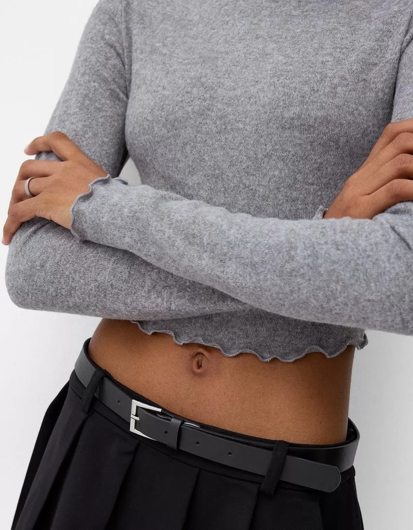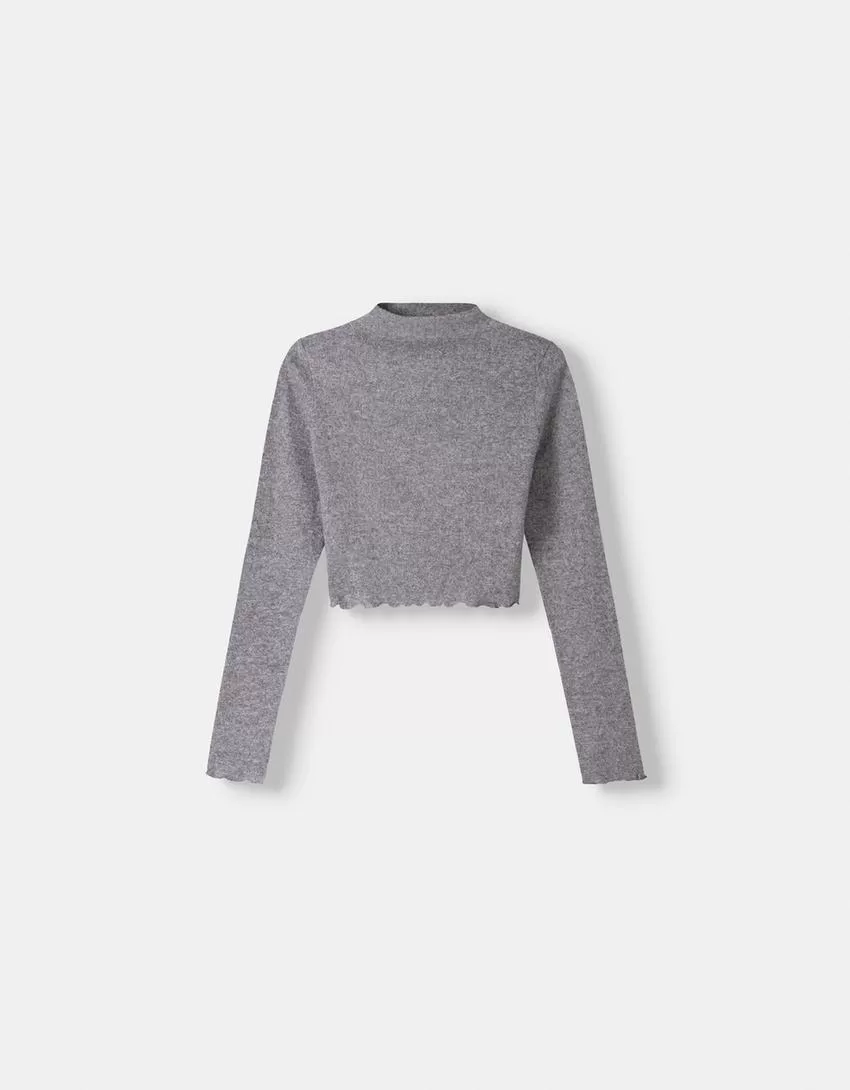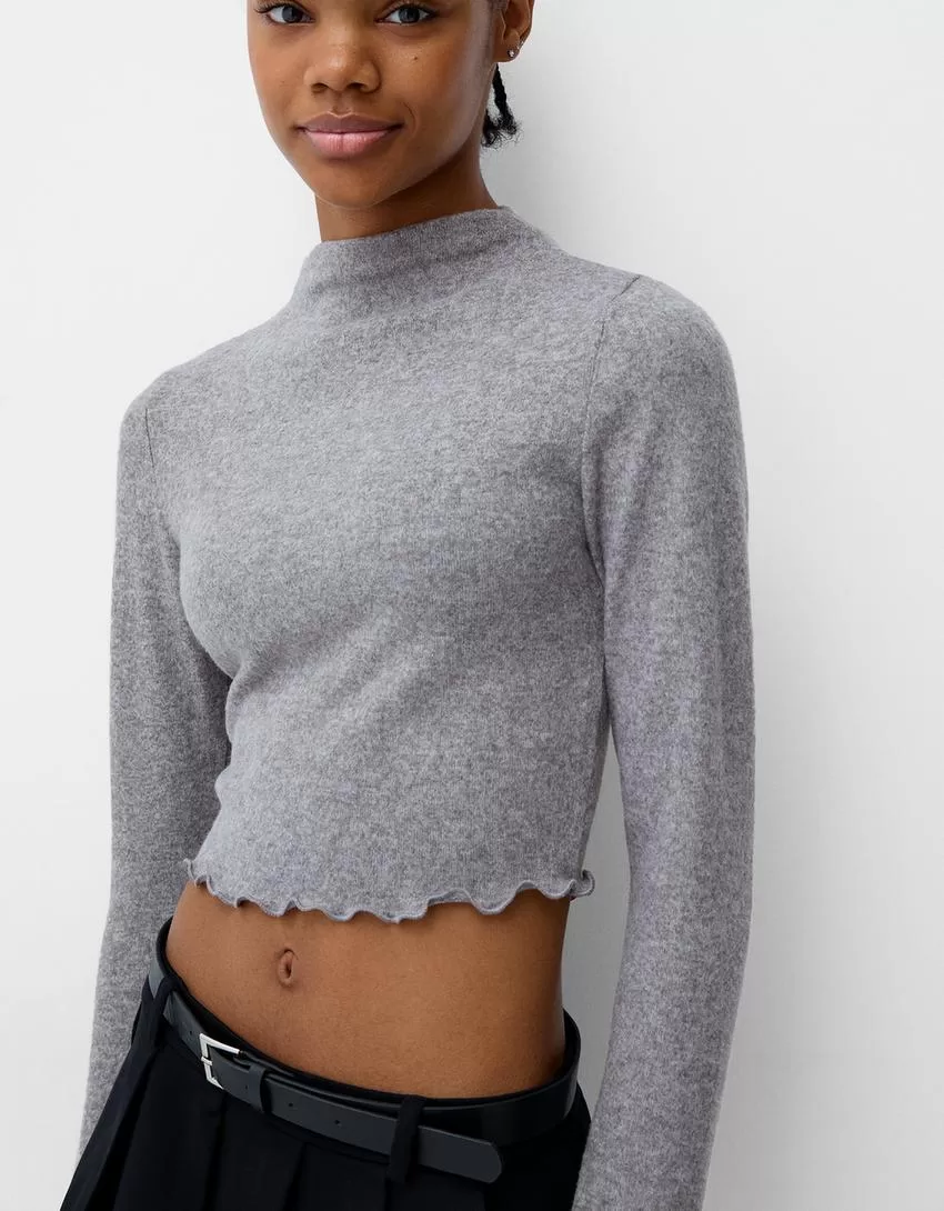 Soft touch cropped high neck sweater