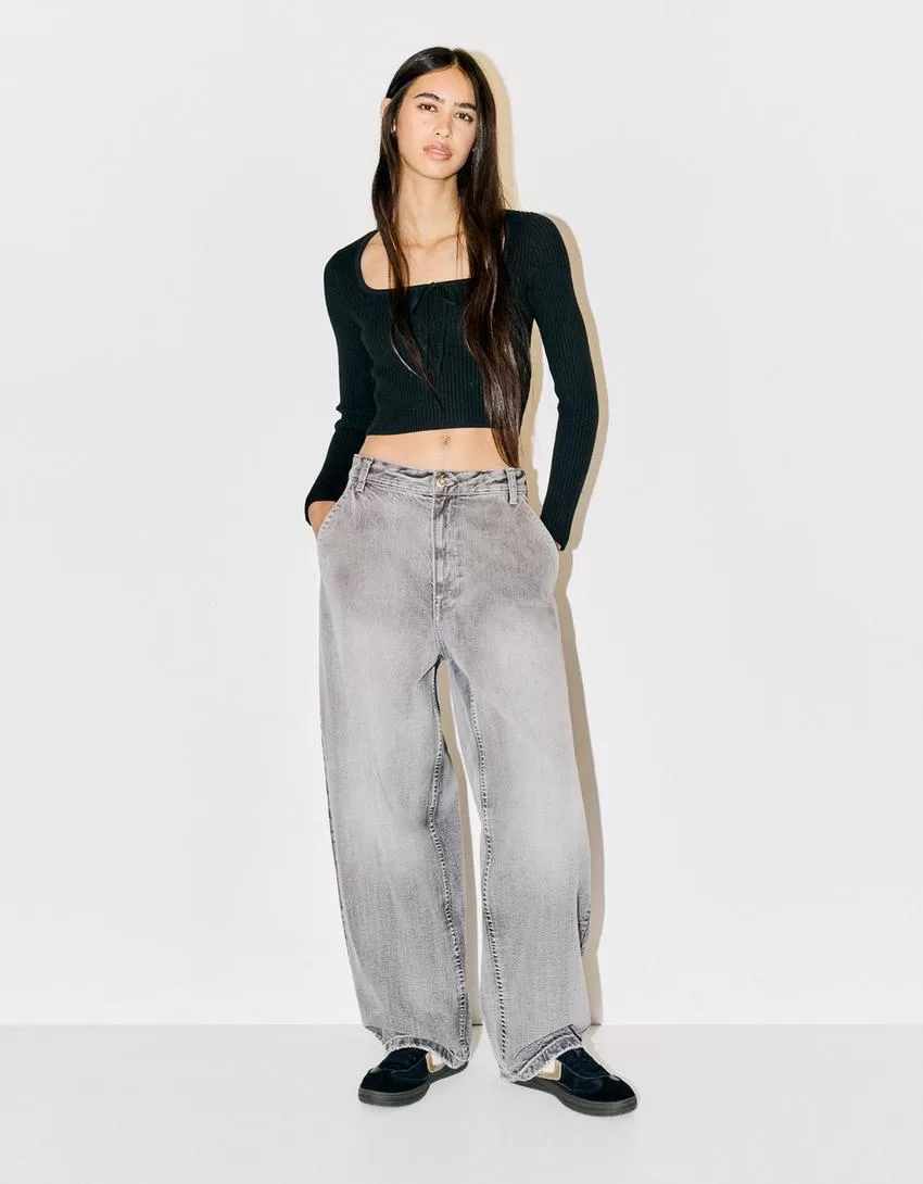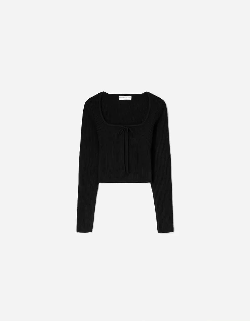 Sweater with a square neckline and bow