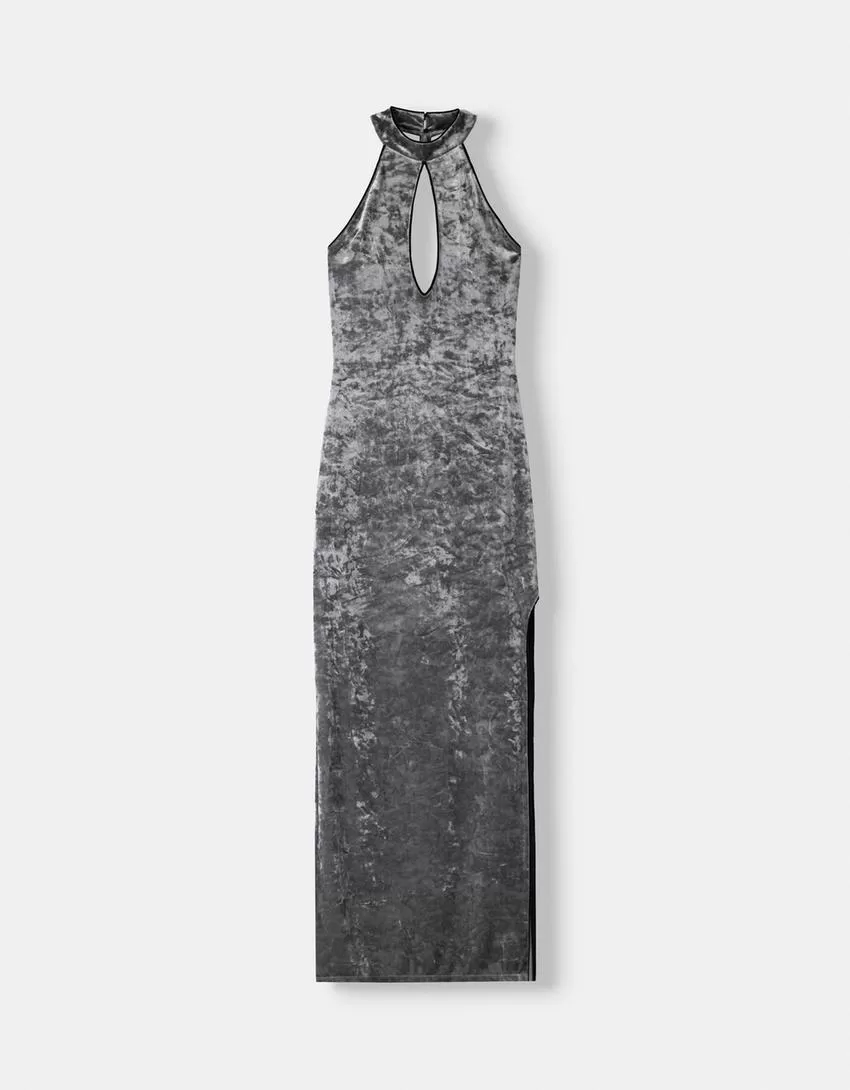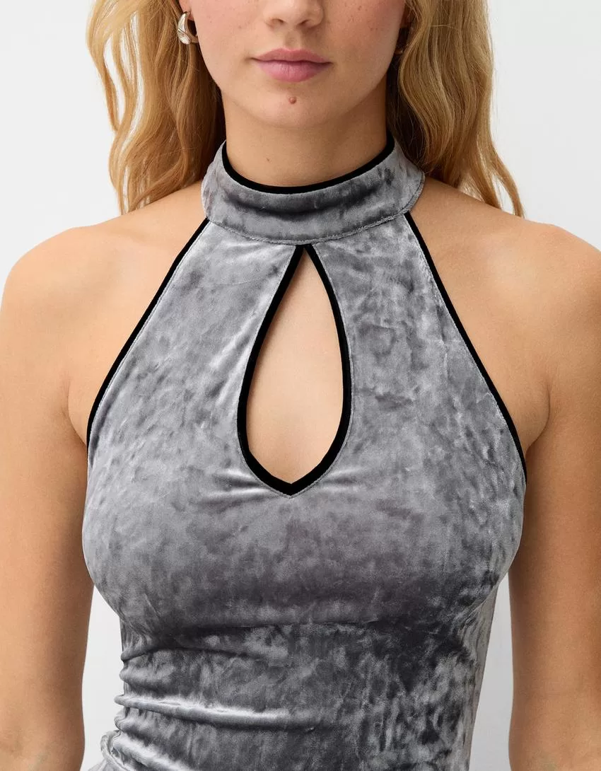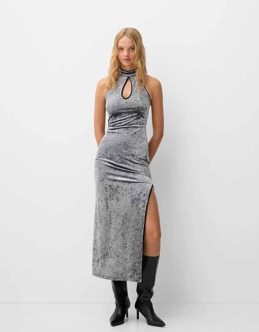 Velvet midi dress with teardrop neckline